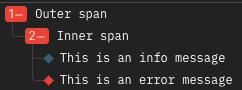 Here the spans themselves still have their level set to info as is the default, but they're colored red instead of blue because they contain an error log.